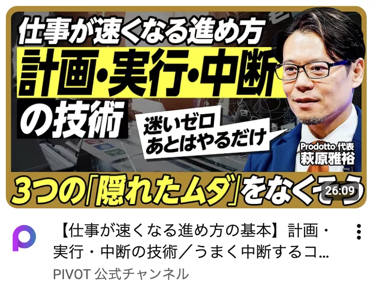 ビジネス映像メディアPIVOTの「TIME IS」にて、弊社代表・萩原雅裕による「仕事が速くなる進め方の基本」が公開されました。