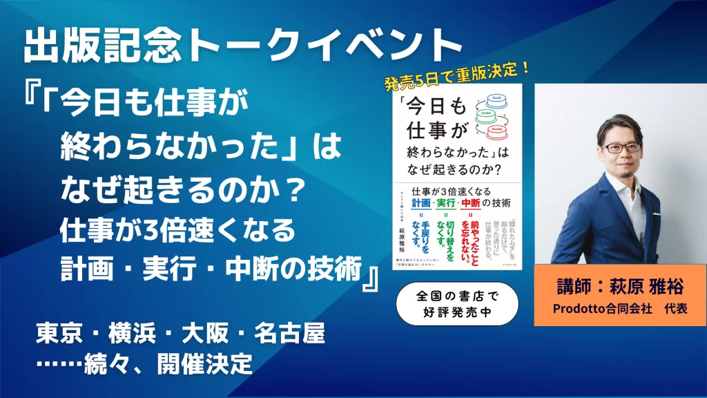『「今日も仕事が終わらなかった」はなぜ起きるのか?仕事が3倍速くなる計画・実行・中断の技術』 出版記念トークイベント